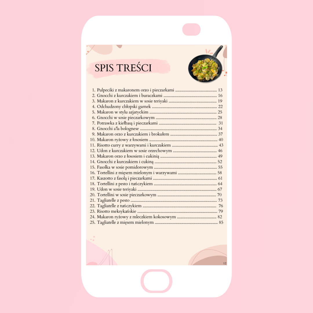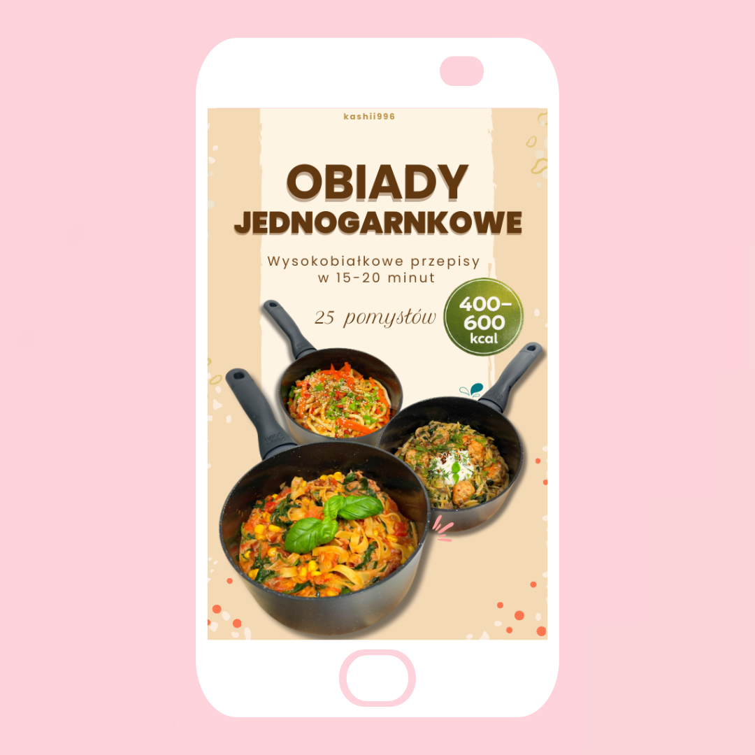 W środku znajdziesz 25 przepisów na obiady jednogarnkowe, czyli pełnowartościowe dania, które przygotujesz w zaledwie 15–20 minut. Każdy posiłek jest wysokobiałkowy, odpowiednio zbilansowany i oparty na produktach łatwo dostępnych w zwykłych sklepach.